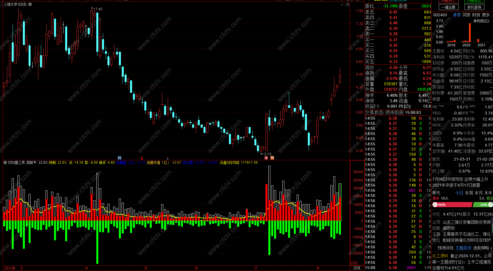 双向量指标,用于快速查看个股信息:成交额、换手、流通。红柱高于绿柱则买方大于卖方,一次看尽股票多日信息。数据都在指标上。可以说是一个工具性分析指标。使用者可以根据双向量判断当前股票买卖双方情况。