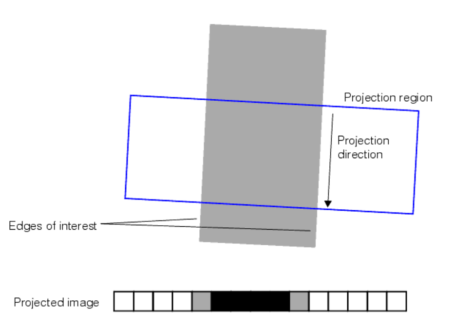 ** verticalProjection 竖直方向投影*如果选择了 Mode = 'simple',则在图像坐标轴的方向上执行投影,即: