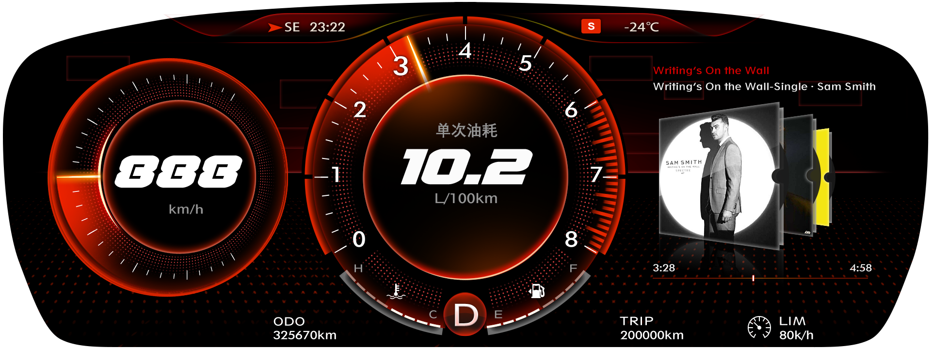 目前以完成HUD界面及接口开发,液晶仪表舒适模式开发。展示如下: