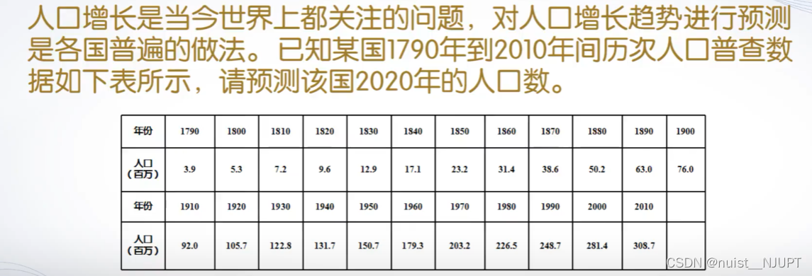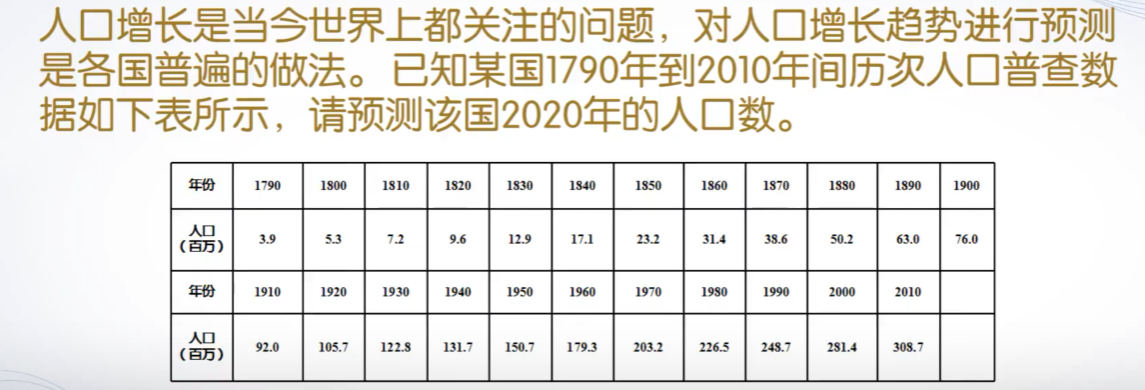 我们看下面的人口预测的例子,了解一下曲线拟合。