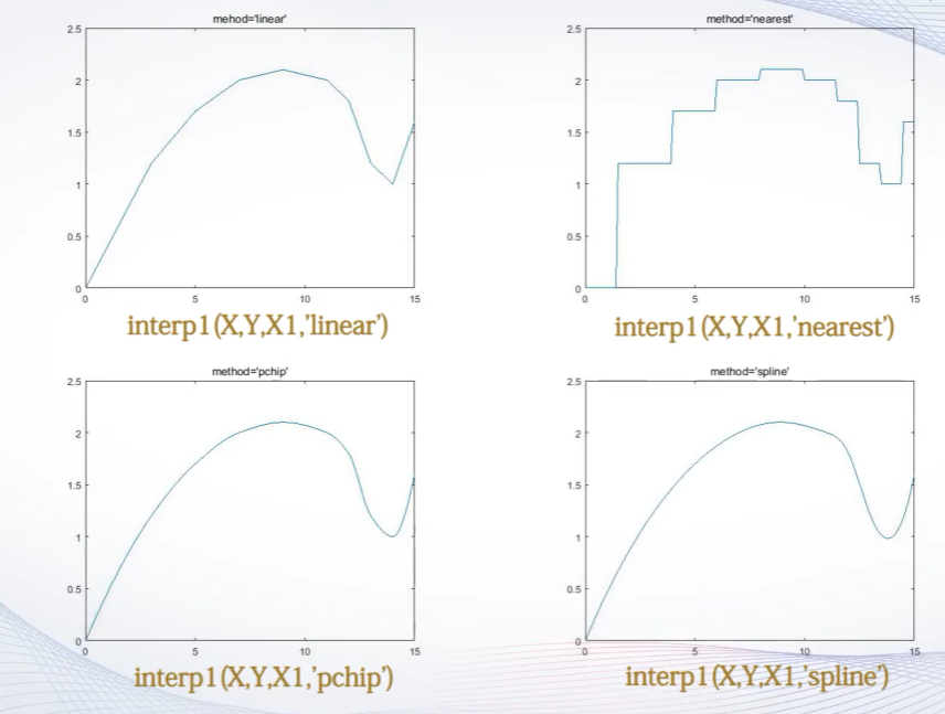 在MATLAB中我们使用interp1()函数进行一维插值。
