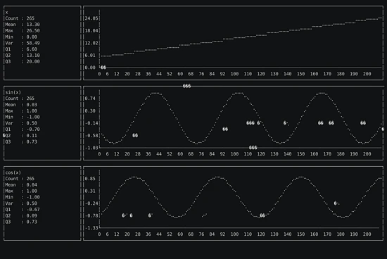 它是一个终端下的数据可视化工具,可以通过文件或者管道接受输入。它可以绘制出各种线性和图表。