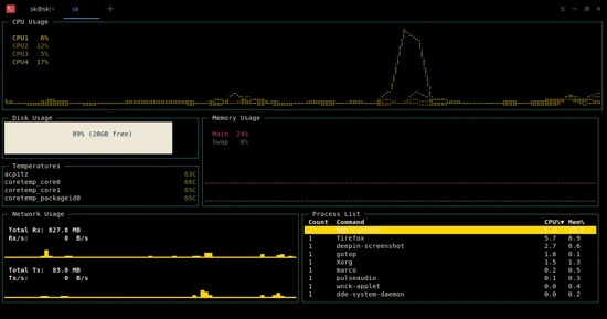 它是一个基于终端的图形活动监视器,受 gtop 和 vtop 启发而开发的。gotop 可以监控在远程机器上运行的 gotop 并在单个实例中显示(某些)指标。它支持插件扩展,可以让监视器变得更加灵活。