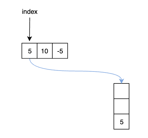 index 右移,此时 index 指向元素和栈顶元素都大于 0,方向相同不会碰撞直接入栈