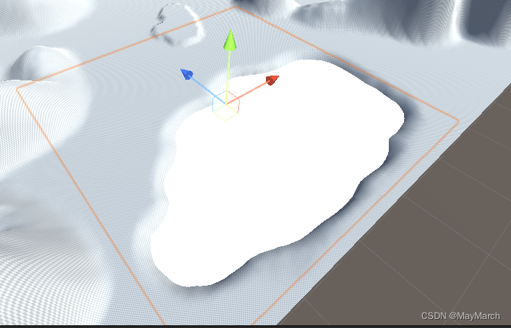 绘制水:在沟壑的地方绘制水,利用一个平面填充沟壑处,给平面一个水的材质即可。如下图所示,给了一个平面,没有给水的材质,你们可以在资源商店下载一个水的材质。