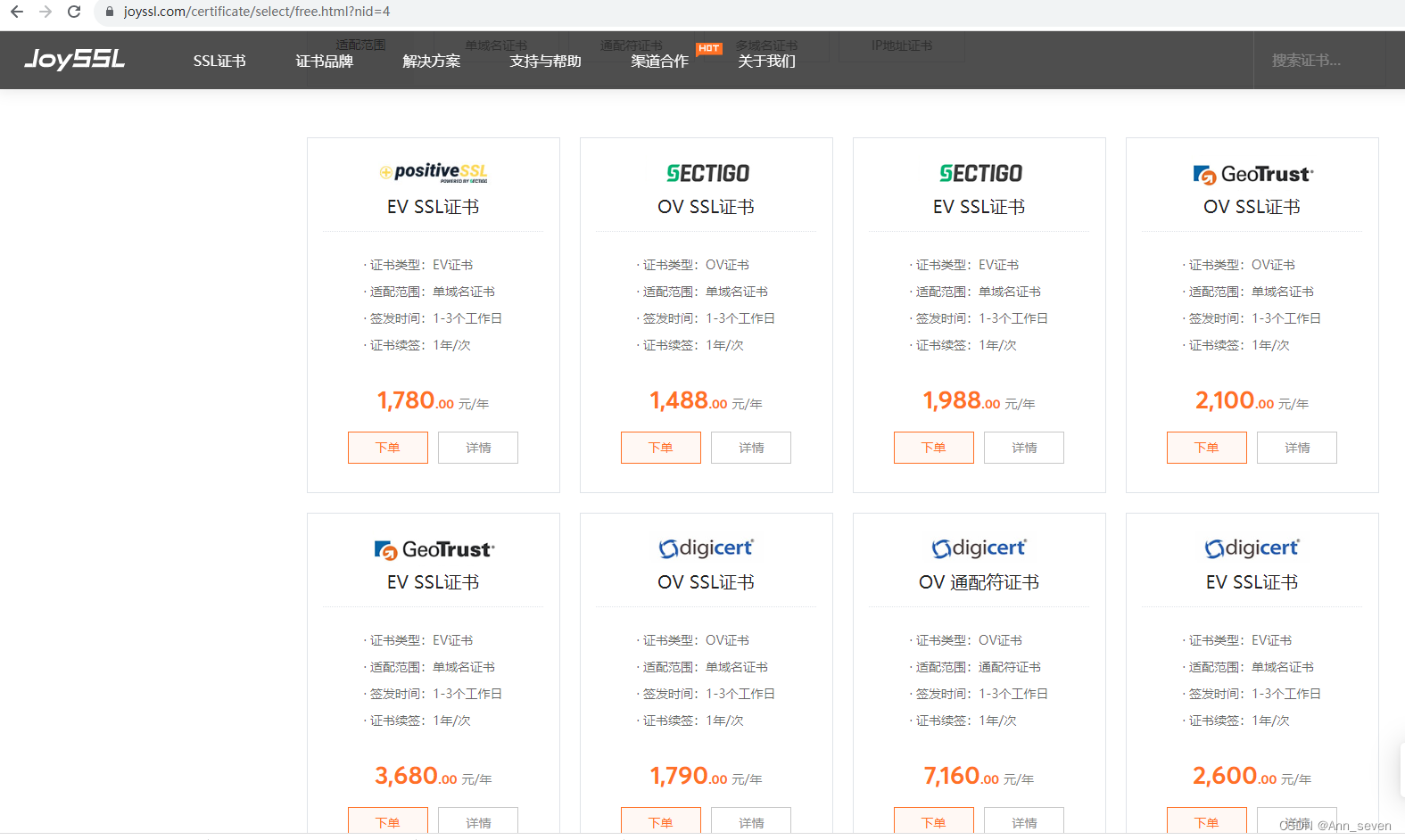 4)EV证书是最高级别的SSL数字证书,可以有效地增强网站的信任度,充分证明您的网站是安全的,可以放心进行交易。 https://www.joyssl.com/certificate/select/free.html?nid=4