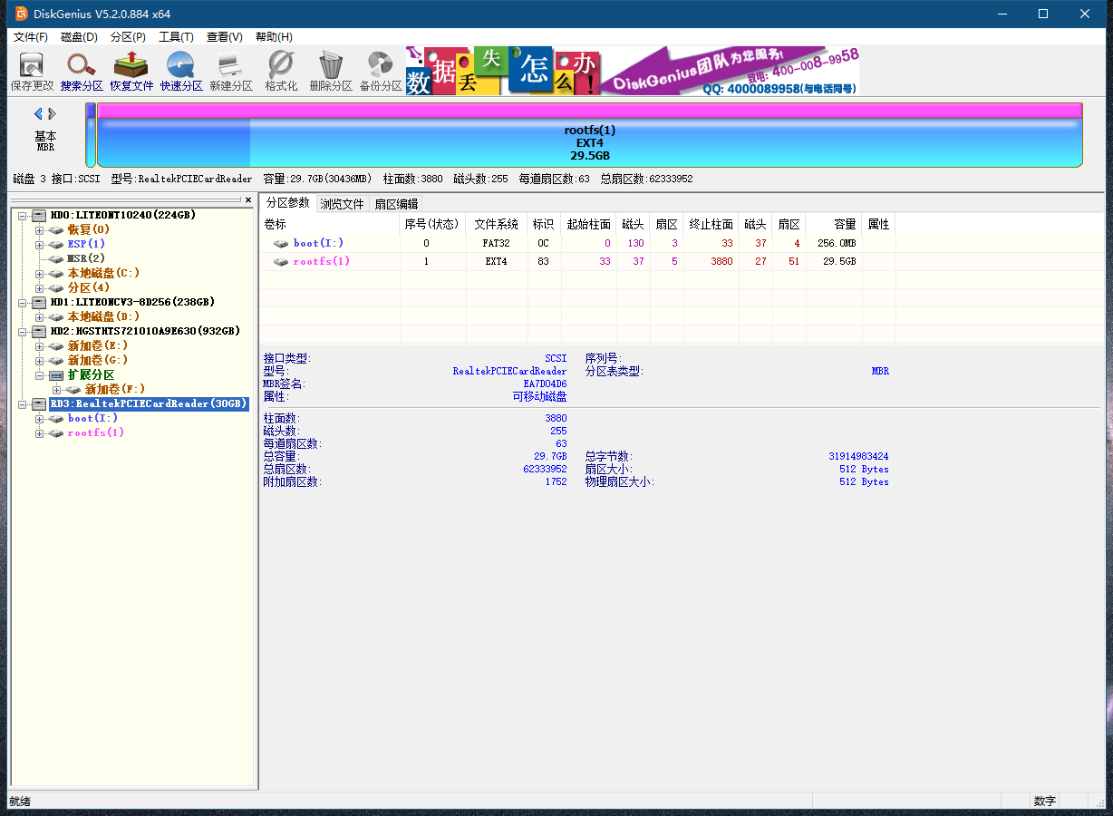 软件:分区工具DiskGenius;SD卡镜像写入工具win32diskImager;树莓派镜像