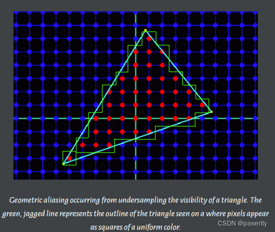 我们要分析Edge Blending,以下图中的123三个红点做参考,这三个点形成了明显的走样。