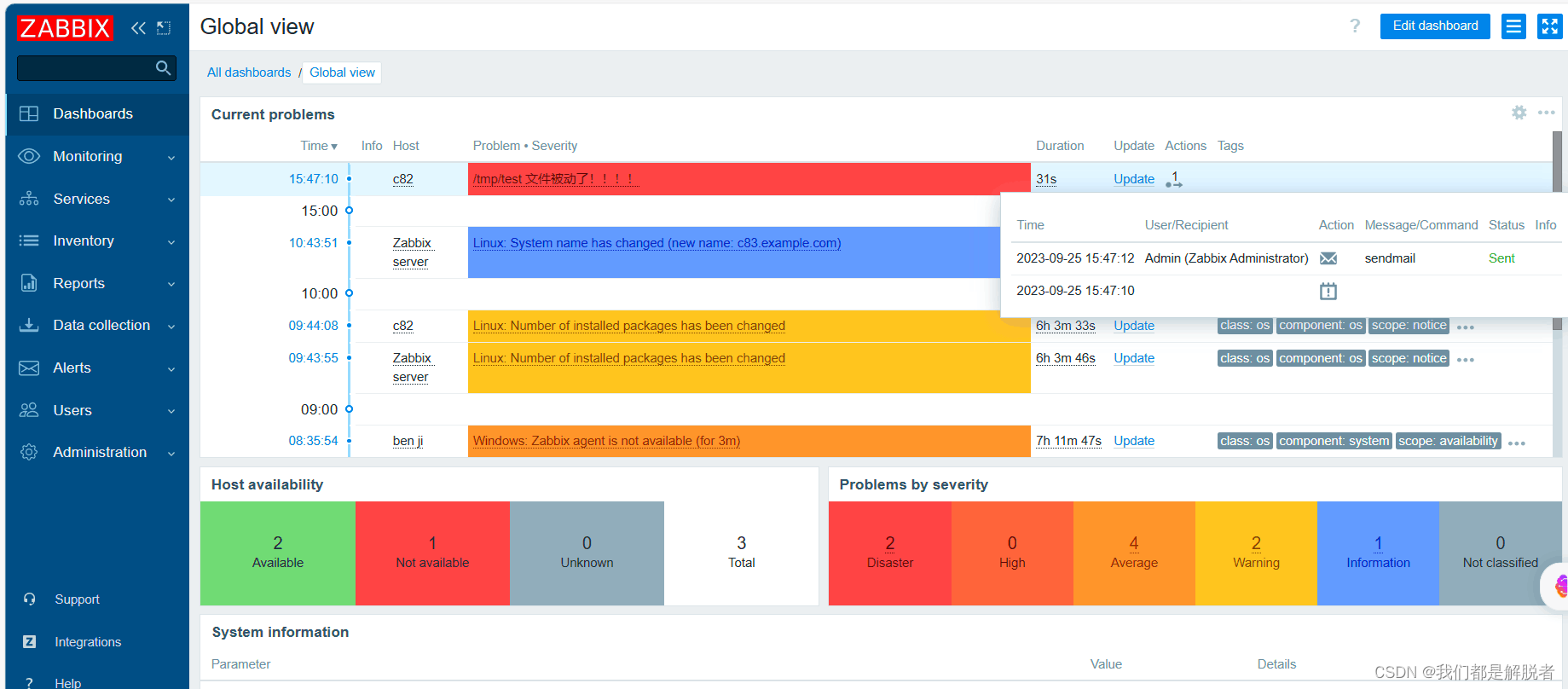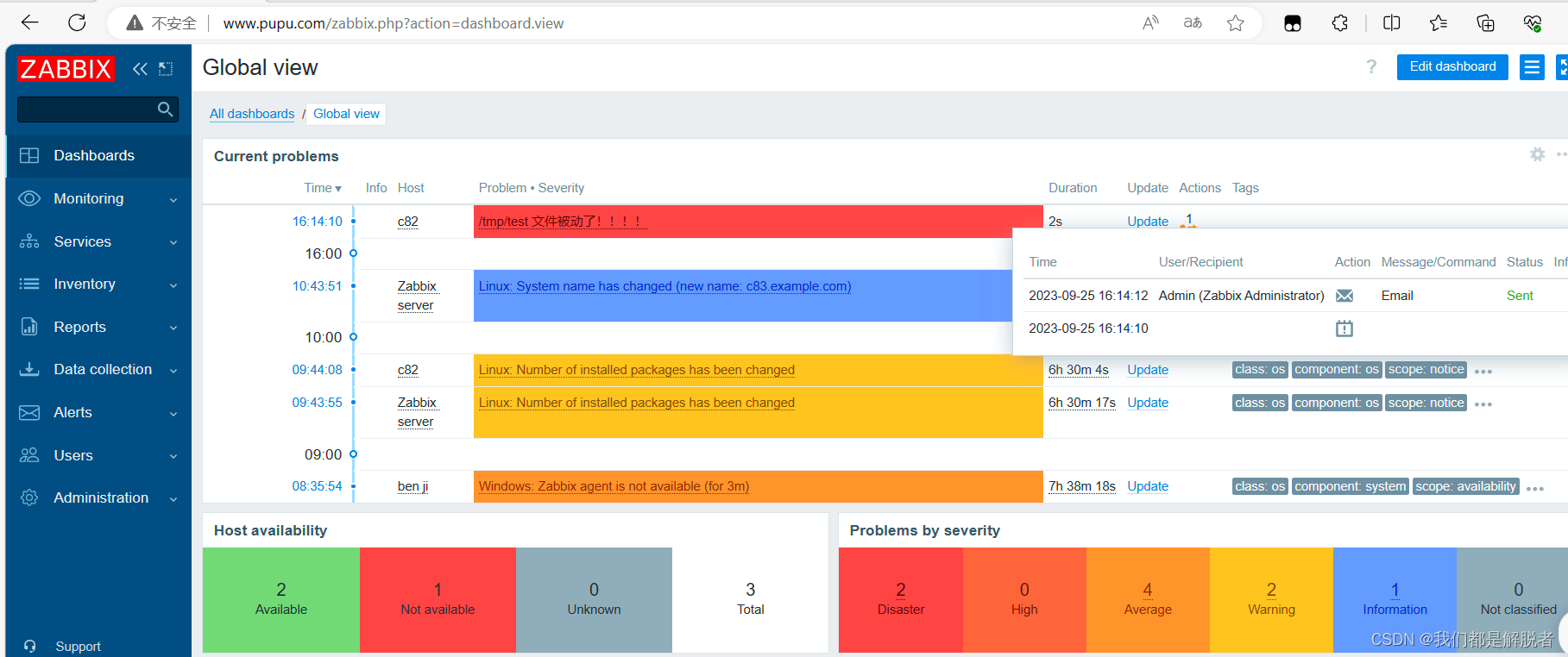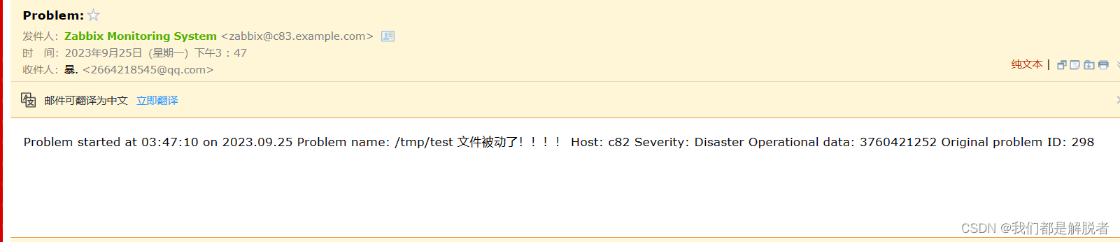 30s后我们看到的报警信息,并且在他的状态那里我们看到邮件发送成功,同时我们收到了报警邮件。