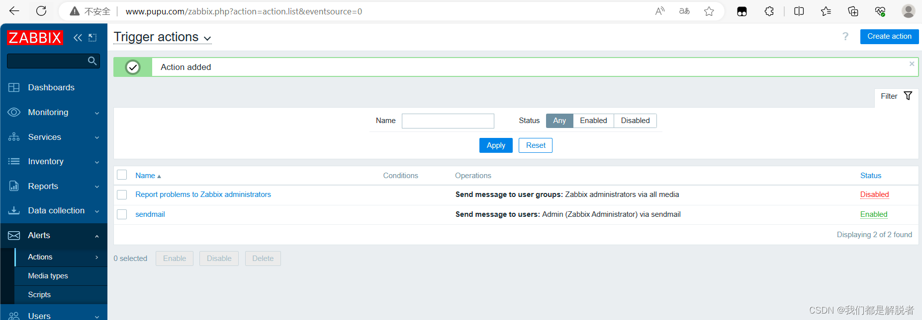 创建动作:当触发器产生事件时,可以创建动作来执行一些操作,比如发送通知、执行脚本等。