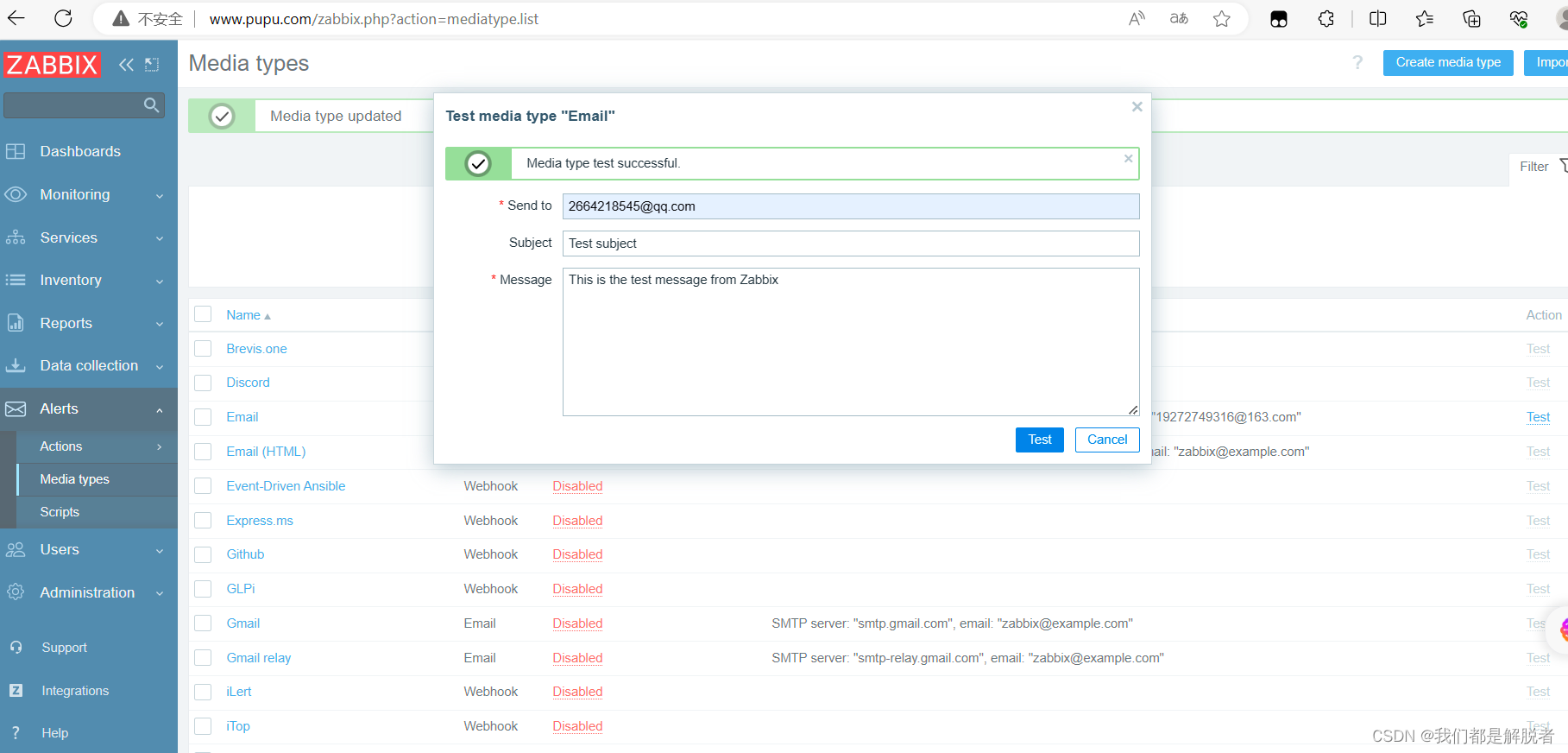 # 我这里使用qq邮箱接受zabbix报警信息# 4.手动测试邮箱是否可以成功接受邮件