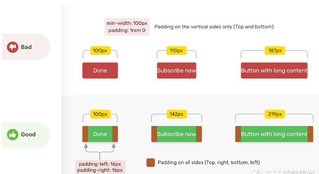 譬如经常会使用 min-width 控制按钮的最小宽度: