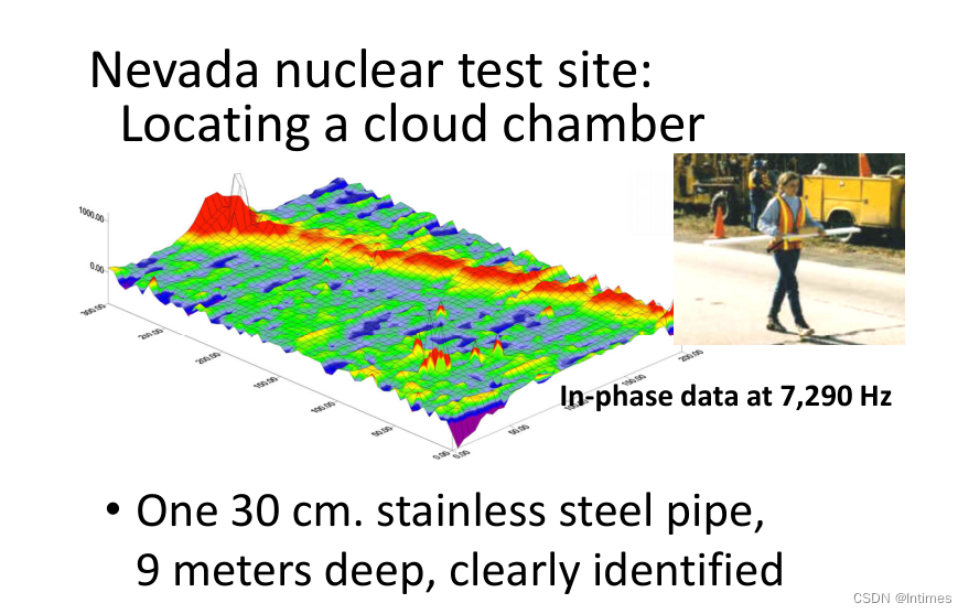 图为在内华达核试验场探测地下空洞,该图的频率为7290Hz的同向分量数据。