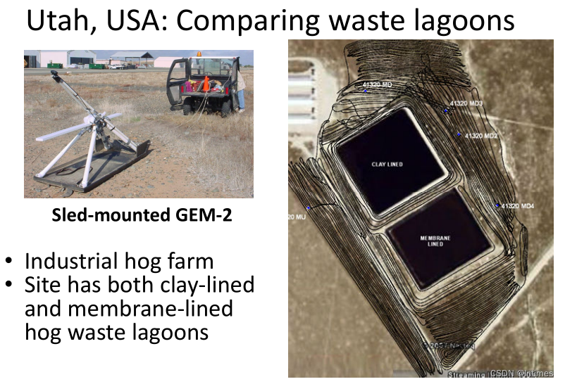 美国犹他州,探测了废弃的泄湖。这是1个工业化的养猪场,这个地方既有粘土衬里的猪泻湖,也有膜衬里的猪泻湖。