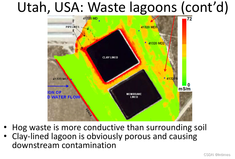 猪泄湖比周围土壤更导电,而且黏土衬里的泄湖是多孔的,更容易造成周围和下游的污染。