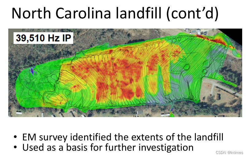 这个图是39510Hz的同向数据,可以很好的识别填埋区,这样就可以为后续调查提供方便。