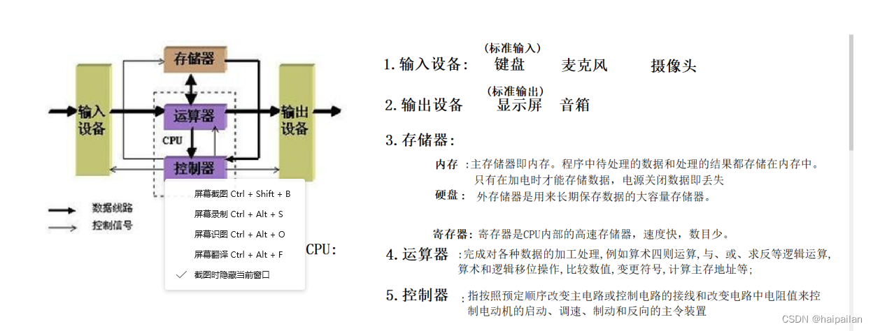 十进制 : 0 1 2 3 4 5 6 7 8 9 逢十进一 二进制 : 0 1 逢二进一 bit (b) 位 计算机中最小的单位 字节 : Byte (B) 计算机中最小的分配单元 1 字节 ===8 位 8bit存储程序思想