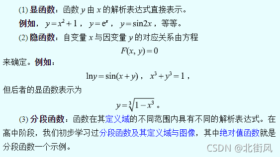 根据函数的解析表达式的形式不同,函数也可分为显函数、隐函数和分段函数三种: