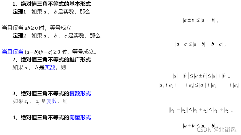 绝对值三角不等式的基本(推广、复数、向量)形式