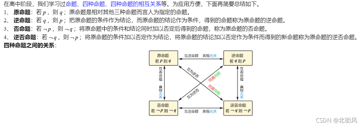 在高中阶段,我们学习过有关命题条件与结论的充分条件与必要条件、四种条件的判断