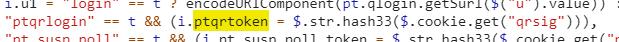 至于,ptqrtoken全局搜索会发现一个c_login_2.js的js文件,到preview视图格式化js代码查找ptqrtoken会发现有下面这样一段代码: