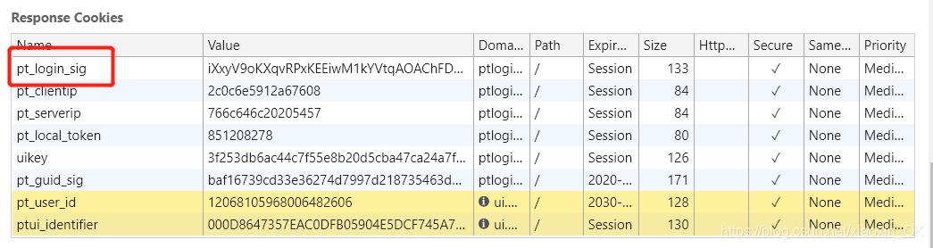 然后,去访问登陆页面获取cookie中的pt_login_sig对应的值,多次抓包发现接口的参数是固定的: