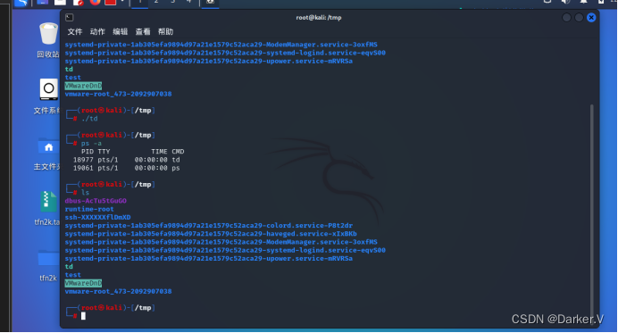 test创建成功(说明肉鸡已经被控制,可以控制肉鸡攻击)
