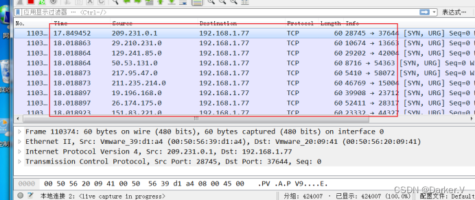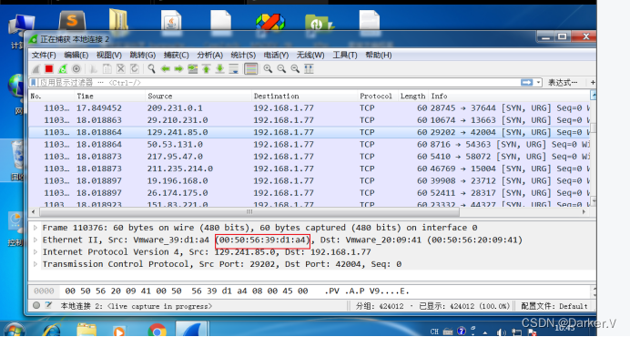 有关攻击的包的mac地址都没有改变,由此判断是主控端控制肉鸡攻击