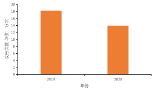 2020 年 (截止 2020 年 12 月),我们监控到 DDoS 攻击次数为 15.25 万次,攻击总流量为 38.65 万 TB,与 2019 年同期相比,攻击次数减少了 16.16%,攻击总流量下降了 19.67%。 当然这未必是好 消息,因为攻击次数和攻击流量减少最主要的原因是抗 D设备检测和防护能力越来越强,防护及时有效, 使得攻击者连续打击没有效果,所以前结束攻击。另一部分得益于主管部门治理的结果,众所周知,