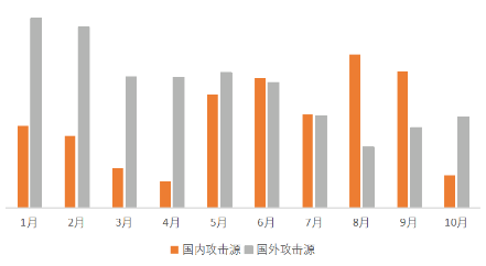 观点二:受新冠疫情爆发的影响,二月份的 DDoS 数量激增,攻击势力主要来自境外,美国是最大 境外攻击来源国。