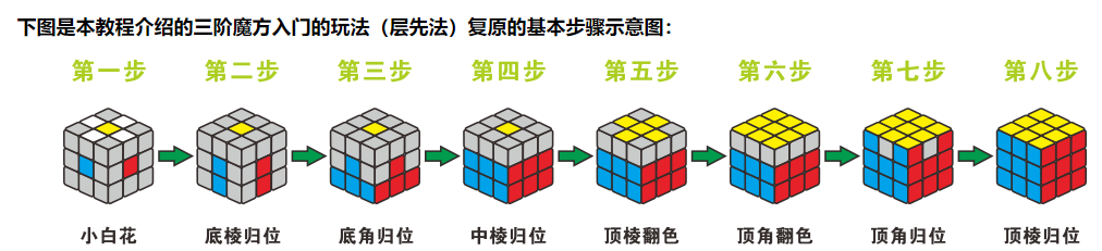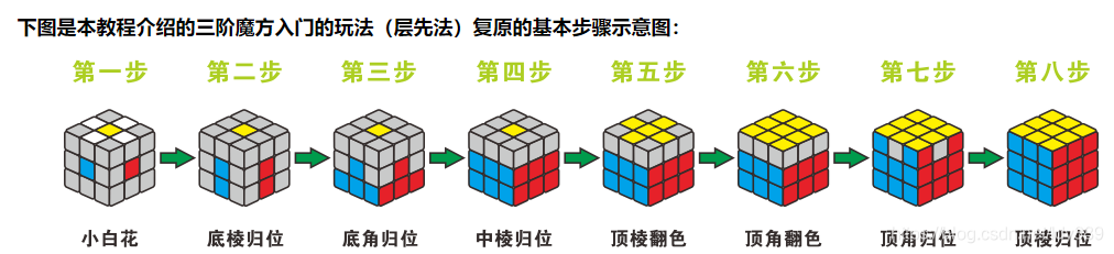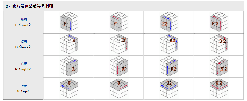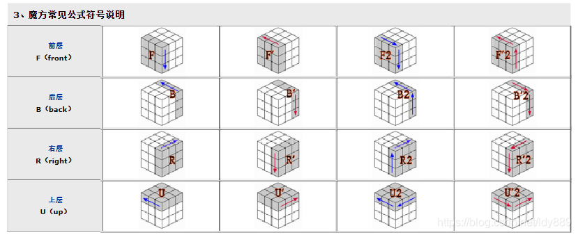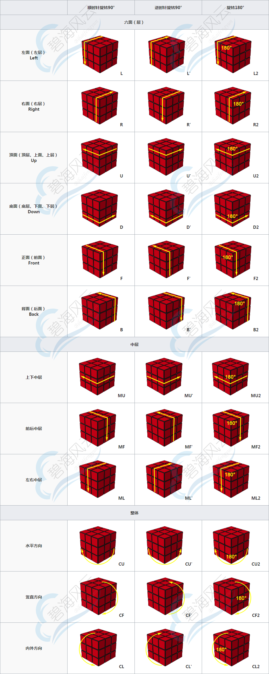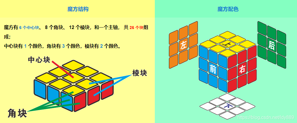 细心的你会发现,每一个操作,面的第5个方块,颜色不会改变。它反应着我们这个面的名字。
