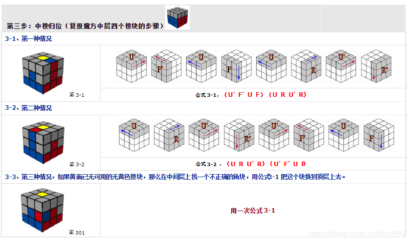 顶逆:(分2部,先让abcd四面的第一行转,然后让f面的自转