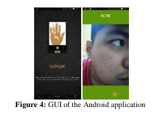 开发一款通过卷积神经网络深度学习识别皮肤病的Android智能手机应用程序有三个主要过程。这是对皮肤病变的捕捉,深度学习分析,并显示结果,如图3所示,应用程序的图形用户界面如图4所示。