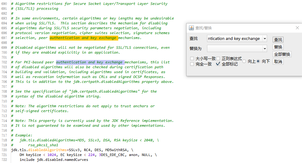 2.全局搜索含有字符创"authentication and key exchange"的协议(或者直接搜索TLSv1、TLSv1.1)