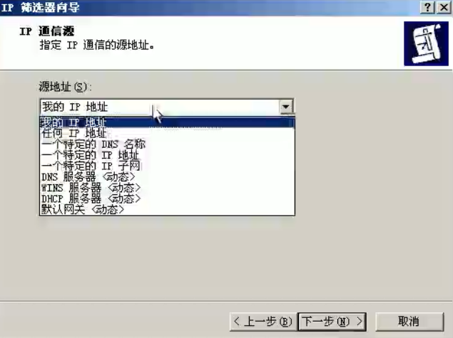 通信两端的源地址和目的地址,可以为一个特定IP地址,也可以为一个特定的IP子网等,如下列表中的选项: