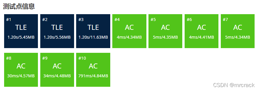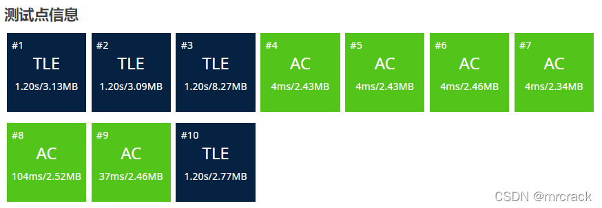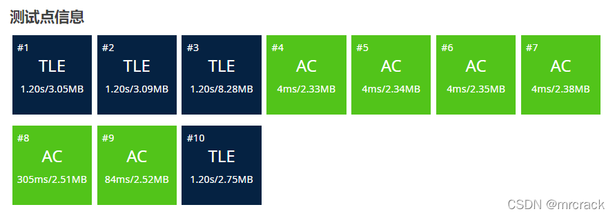 | 测试点8 | 运行超时 | 4320KB | 1998MS |