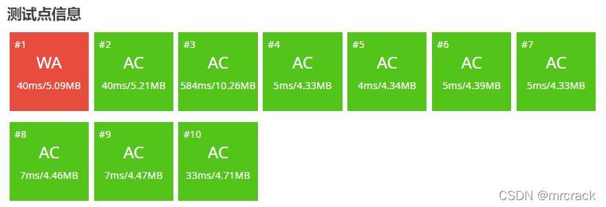 | 测试点10 | 运行超时 | 8064KB | 1996MS |