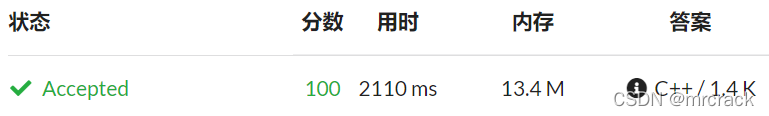 | 测试点7 | 答案正确 | 1900KB | 40MS |
