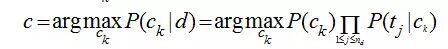 文本分类的应用很多,比如垃圾邮件和垃圾短信的过滤就是一个2分类问题,新闻分类、文本情感分析等都可以看成是文本分类问题,分类问题由两步组成:训练和预测,要建立一个分类模型,至少需要有一个训练数据集。贝叶斯模型可以很自然地应用到文本分类上:现在有一篇文档d(Document),判断它属于哪个类别ck,只需要计算文档d属于哪一个类别的概率最大: