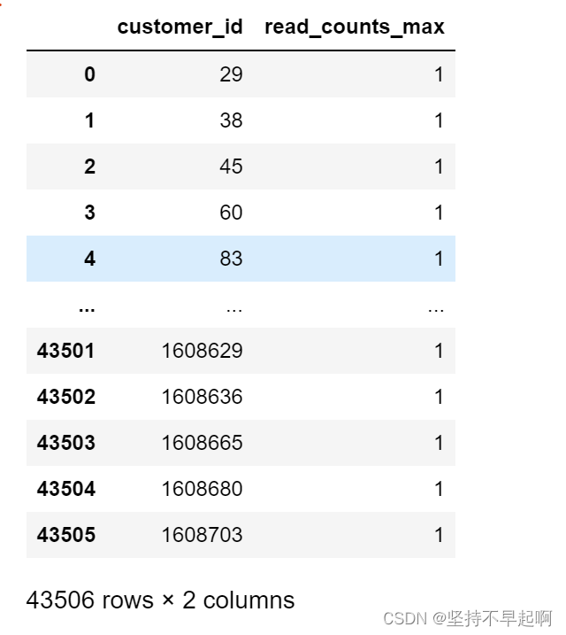 buy_again = df[df['type']==4].groupby('customer_id')['product_id'].count().reset_index()