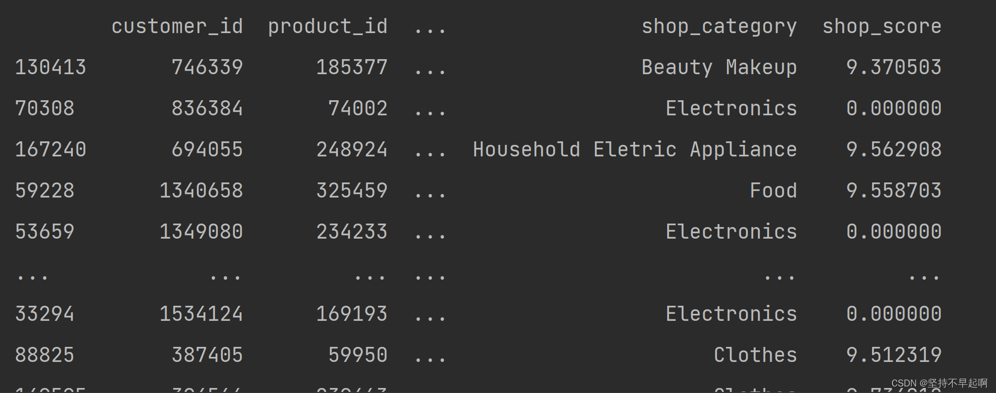 | customer_id | product_id | action_id | age_range | customer_level | city_level | shop_id | vender_id | fans_number | vip_number | shop_score | |