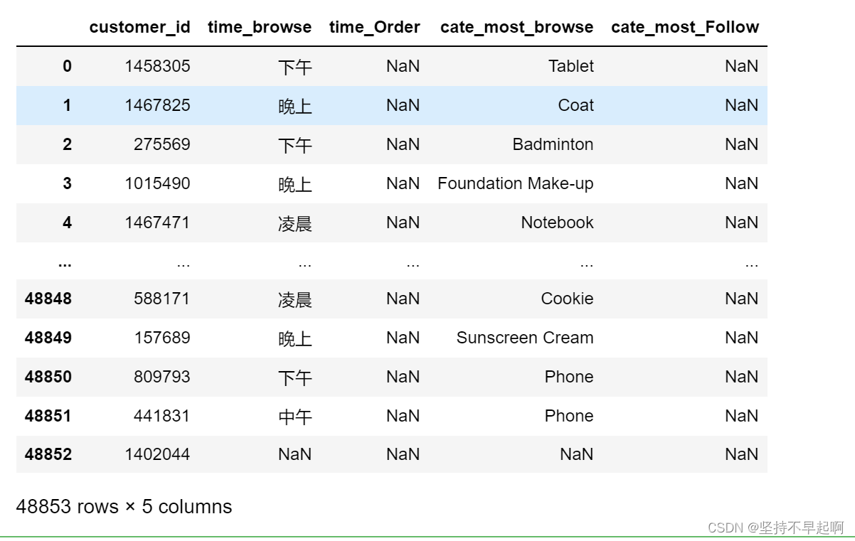 | 48968 | 486260 | 凌晨 | NaN | Coat | NaN | NaN | NaN | NaN | NaN | 1.0 | NaN | NaN | 1.0 | 17.0 | NaN | NaN | NaN | 是 | 是 | 未购买 |
