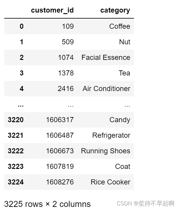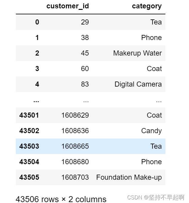 | customer_id | product_id | action_date | action_id | type | age_range | gender | customer_register_date | customer_level | city_level | brand | shop_id | category | product_market_date | vender_id | fans_number | vip_number | shop_register_date | shop_category | shop_score | |