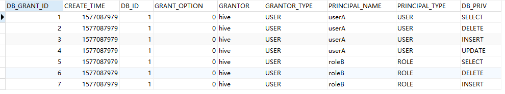 | PRINCIPAL_NAME | varchar | 128 | 被授权者名称 |