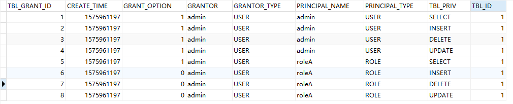 | TBL_GRANT_ID | bigint | 20 | 表权限ID |