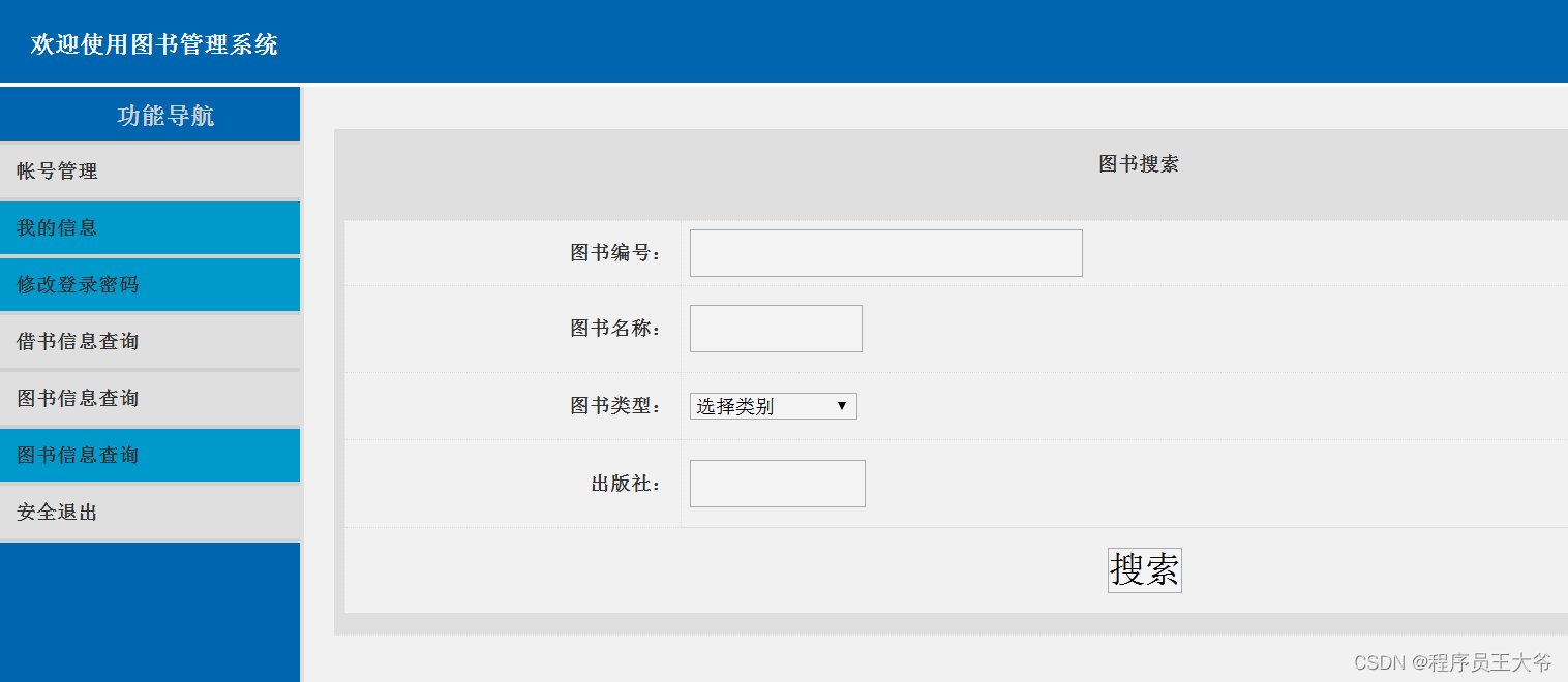 学生用户功能:登录、个人信息管理、图书查询,我的借书信息查询。