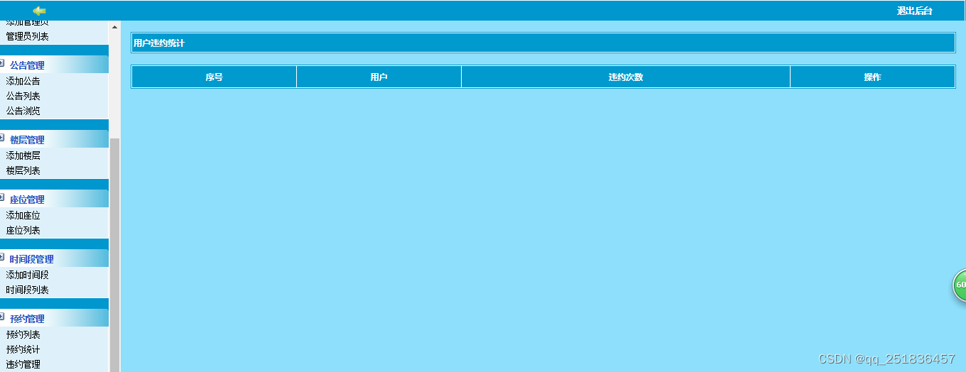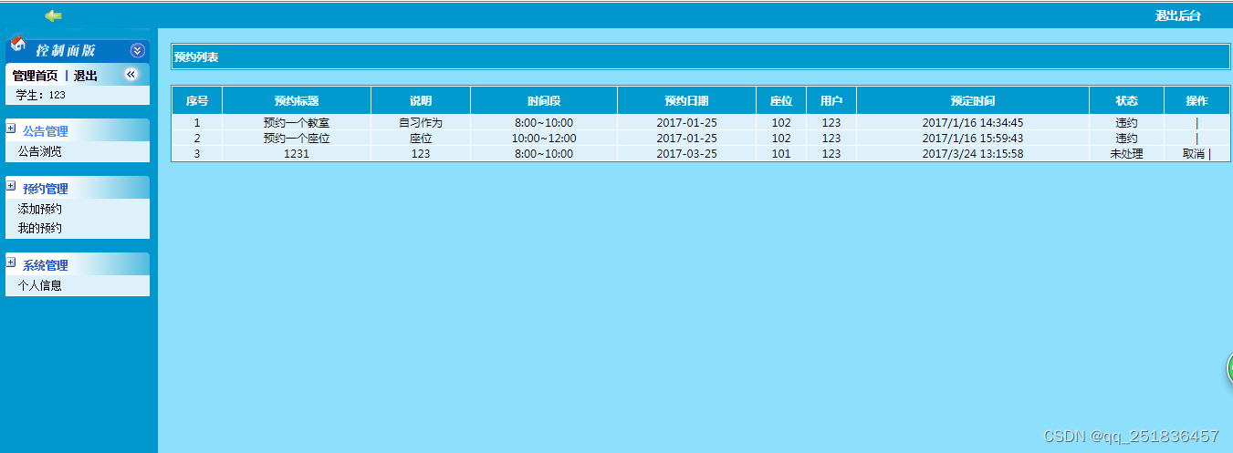 (5)座位管理:对座位信息进行添加、删除、修改和查看