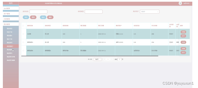 房间预订管理界面如下图所示。