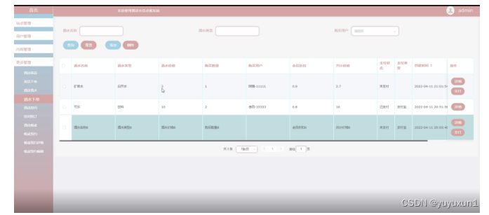 酒水下单管理界面如下图所示。