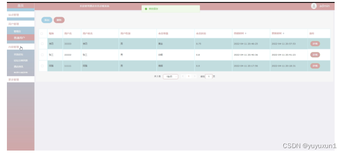 (1)用户管理:主要包括用户列表、用户等级管理等功能。